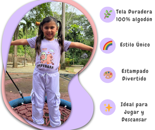 CAPYBARA 🧸: CONJUNTO SUDADERA CARGO + CAMISETA 🌈